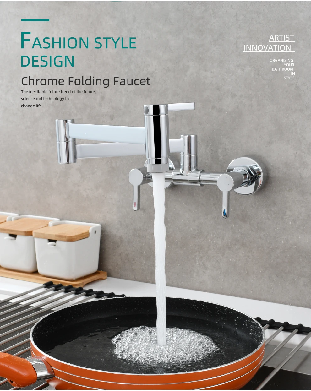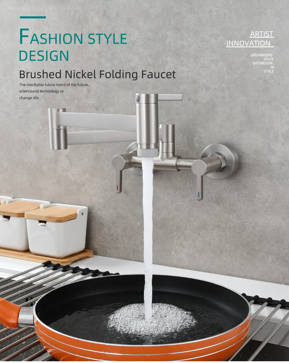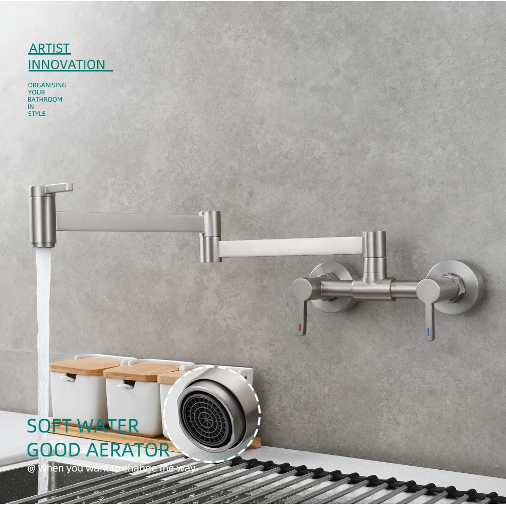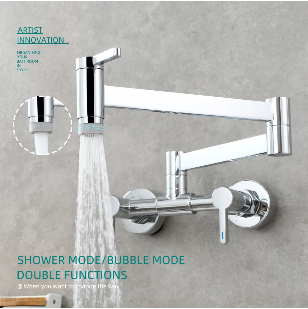 Tecmolog Brass Pot Filler Faucet Folding Kitchen Faucet with Double Joint Swing Arms Rotated Tap Wall Mounted for Hot and Cold Water Chrome/Brushed/Gold/Black