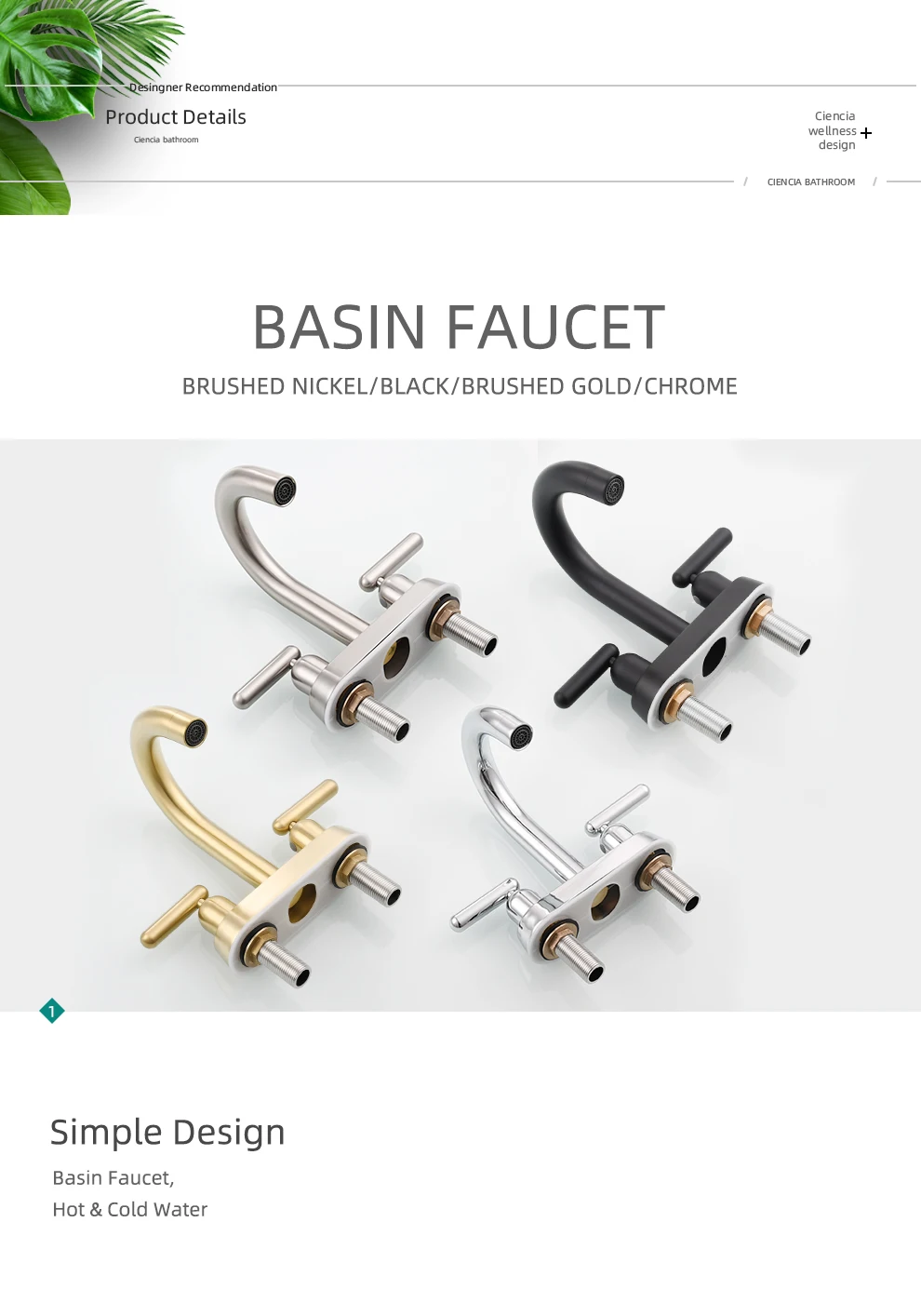 Tecmolog Brass Deck Mounted Bathroom Basin Water Mixer Double Handle Hot and Cold Tap Chrome/Nickel/Black/Brushed Gold