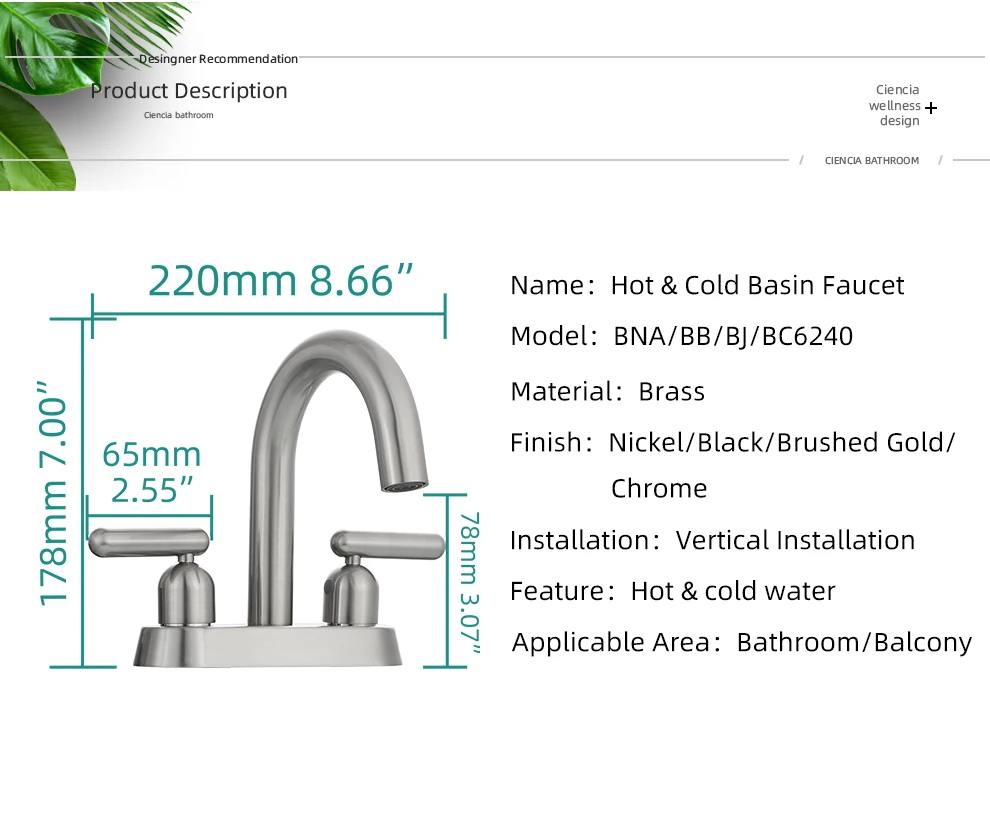 Double handle hot and cold dual function basin faucet suitable for bathroom faucet