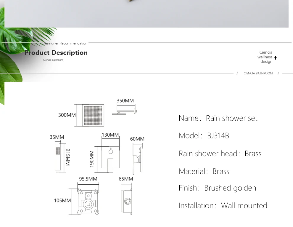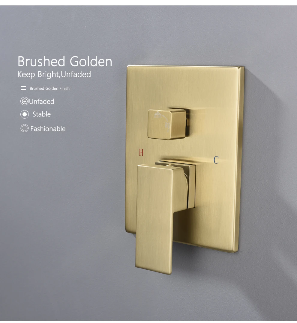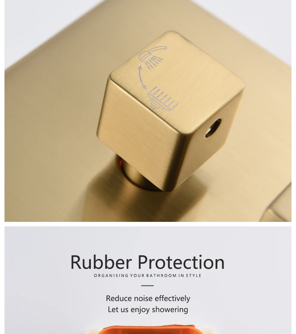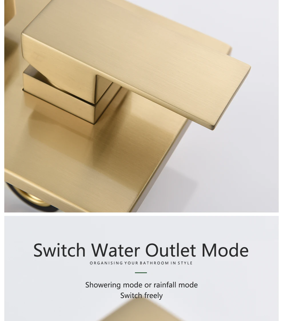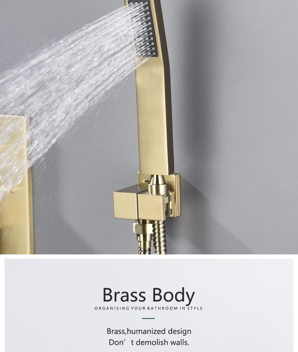 Tecmolog Brass Bathroom Luxury Rain Mixer Combo Set Wall Mounted Rainfall Shower Head System Brushed Gold