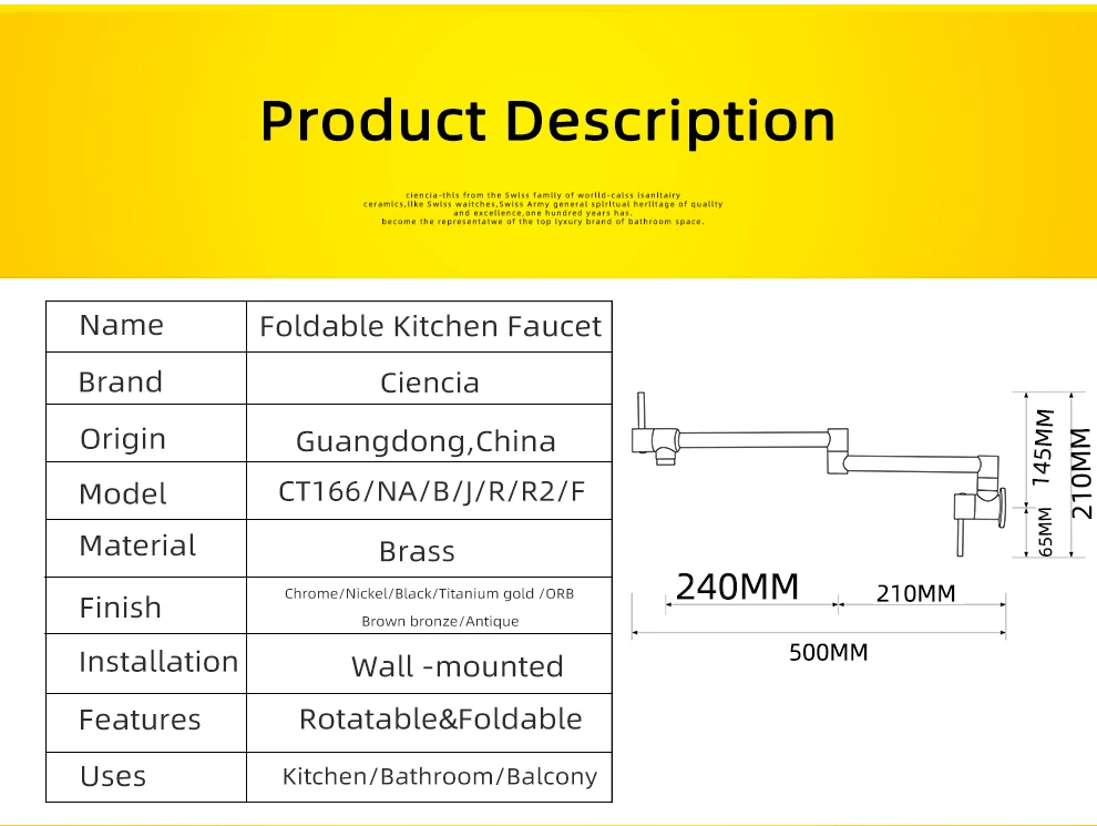 Wall Mounted and 360° Rotatable Folding Lengthened Faucet