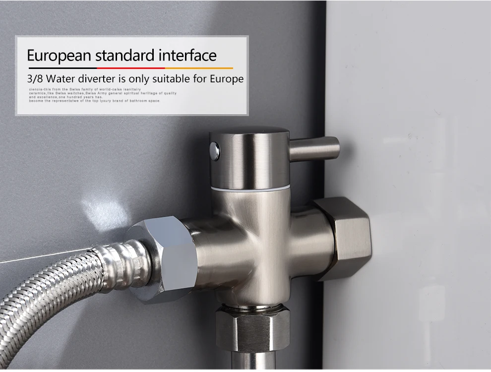 Tecmolog 3 Way Diverter Valve Brass Shut Off Valve 3/8”-12/17 T Adapter for Toilet Water Line DSF007D/DSF007DNA/DSF007DB