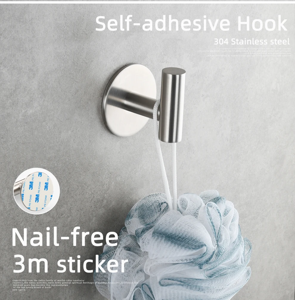 Tecmolog 304 Stainless Steel Nail Free Shower Rack,Wall Hook Bathroom Clothes Hook No Drilling,SBH235NA