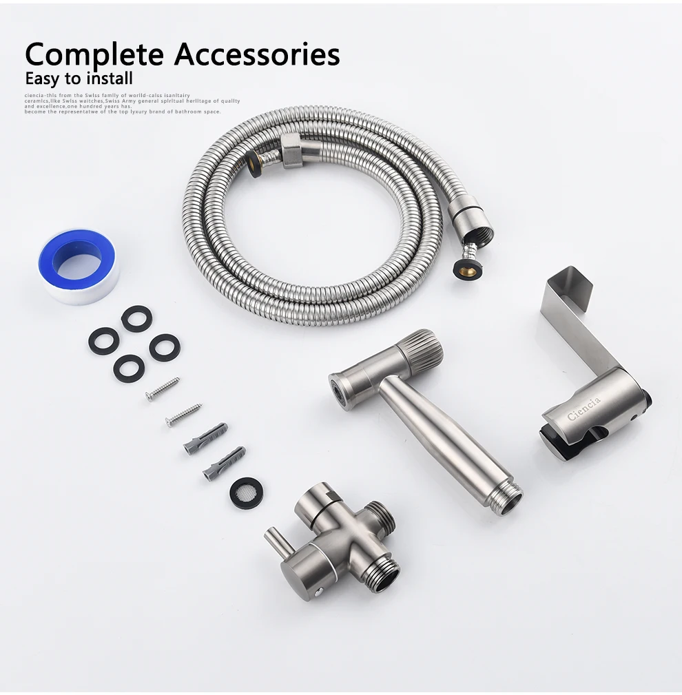 Tecmolog Cloth Diaper Sprayer Shattaf for Toilet, Stainless Steel Pressure Adjustable Handheld Bidet Sprayer Head/Sprayer Set, Brushed Nickel